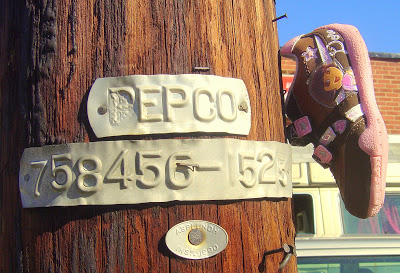 (With apologies to Rene Magritte.) I really don’t know what to say about this one. I can’t tell why this shoe is on this pole, in this orientation. I mean, at all.