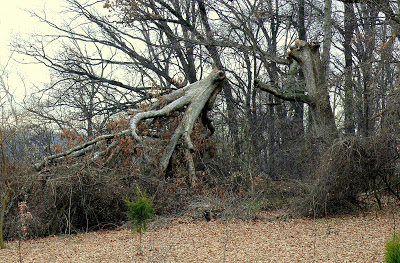 Of this one he says: “Upside-down tree top and right-side-up tree trunk. (Both part (formerly) of the same tree. I’m assuming that it snapped during one of the recent wind storms. This is at the intersection of Gude Drive and State Highway 28, Falls Grove area, near the community center under construction.”