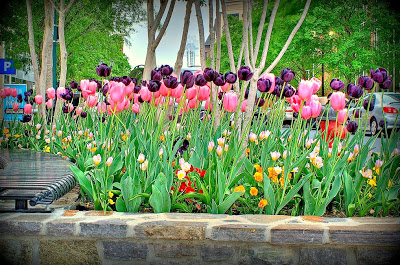 This photograph is by Rockville Central friend Brigitta Mullican. Of it, she says: “I missed the Azaleas when they bloomed, but I got back in time to see my Iris plants in bloom.” Me, I don’t know petunias from papier mache . . . I just think it’s cool how the blue of the house matches the sky!