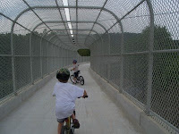 rip through the tunnel under Maryland Avenue by Monument Park. When biking with kids, tunnels and bridges are certainly the safest way to go. Now that we’ve tried it, I think we will regularly bike to visit our friends in Fallsgrove. In just one trip the Bridge has gone from a special destination to an ordinary necessity.