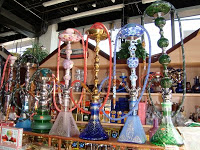 You can’t help but notice the beautifully-colored smoking devices called hookahs. I had to ask if you smoked with them and of course you do. Sam joked that everything sold at the shop was legal. He insisted a hookah’s comparable to smoking cigarettes but much better. When I saw the selection of shisha tobaccos flavored with mint, banana, mango, fruit, and cocktails, I started to wish that I did smoke, so I could try the exotic piece of equipment.