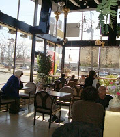 In addition to a grocery store with dry goods, pickles, beans, bulgar, barley, and nuts from Iran, Turkey, Israel and Lebanon, the café serves salads, sandwiches, and kabobs with chicken, beef, and lamb. Sam pointed out that their method of cooking the meats removes the fats making the dishes quite healthy. The Café goes light on the spices. Aash, a thick fortifying peasant soup of lentils, red kidney beans and vermicelli noodles, tops the menu. Even on a chilly winter day, the sun pouring in the walls of windows created a bright spot to eat lunch. The bakery had trays of baklava and almond cookies.