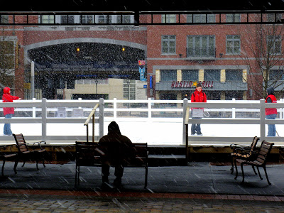That was quite a snow squall Sunday morning! This was the scene at the Town Square Ice Rink.
