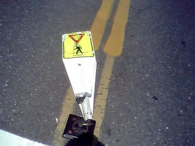 This grim image is by Carl Henn. Of it, he says: “A pedestrian paddle, in a crosswalk on a double yellow line, smacked down. Just evidence that the dangerous driving that killed Codi is too common.”