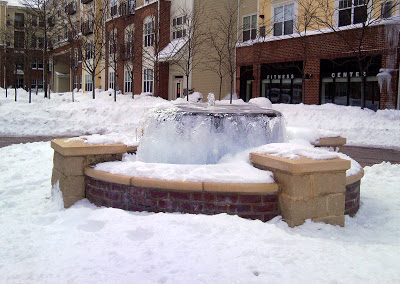 This one is by Rockville Central editor Cindy Cotte Griffiths. Of it, she says: “The fountain in the courtyard of Congressional Village has been frozen and spurting for weeks. I always take a look at this evolving ice sculpture, surprised that it’s still turned on. Sometimes it’s all about the ice not the snow.”