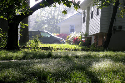 I was just driving through the neighborhood the other morning and the angle of the sun on the dew made this neat scene.