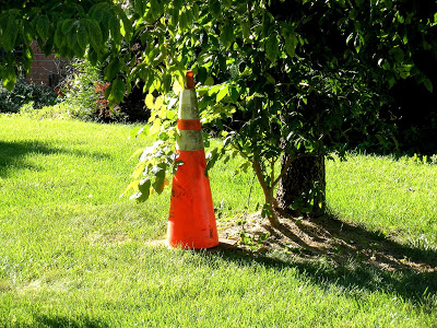 For the life of me, I couldn’t figure out what this cone was doing out in the middle of the lawn by a tree.