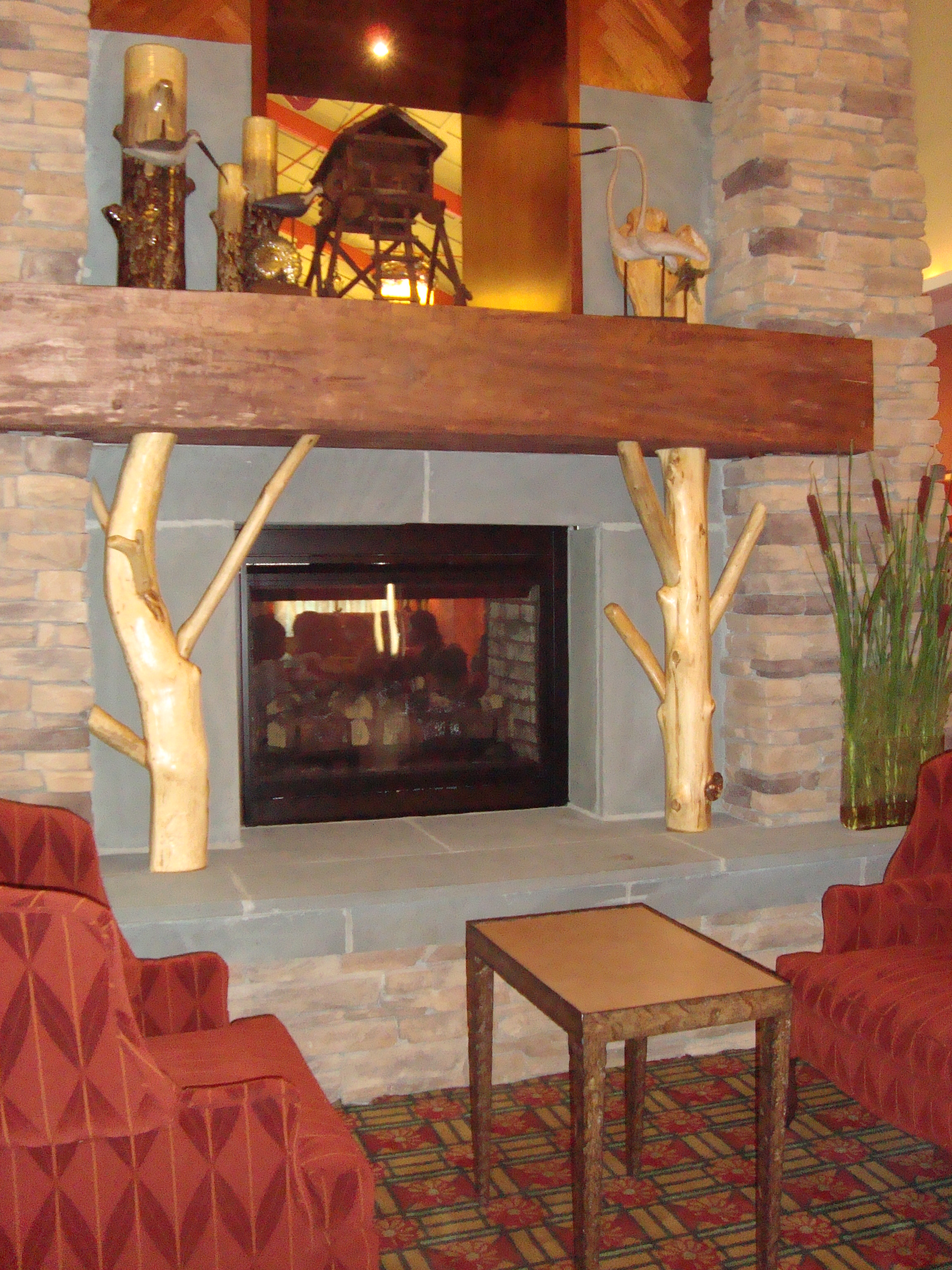 When I entered, I immediately told the manager that his Hilton Garden Inn was “gorgeous”. The reception was held in a bar which opened to a patio. The décor was modern Washington DC with artsy light fixtures and a clean, classy look. The other side of the hotel for overnight guests brings Great Falls indoors with original wood sculpture tables, a large stone fireplace, and an oversized Great Falls painting. I wanted to stay overnight. They had a chilli and hot dog bar set up for guests.