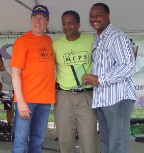 From the beginning, ABC7/TBD have been the main sponsor of the Back to School Fair. ABC7 Nightly News anchorman, Leon Harris, accepted the award then stayed to talk with his fans and sign autographs. As a MCPS parent, he’s always willing to help out.