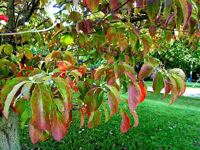 Another harbinger of fall . . . slightly-changed leaves drooping off of this tree.
