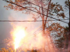 In the West End neighborhood in Rockville, we had a dramatic example. A tree limb fell, crossing power lines and creating arcs in the nearby transformer. Rockville Central friend Herb Winkler happened to be right nearby and captured these dramatic photos of the resulting fireball.