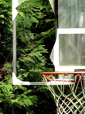 This neighborhood backboard has been this way for a while . . . I like to imagine what kind of dunk it took to produce this effect.