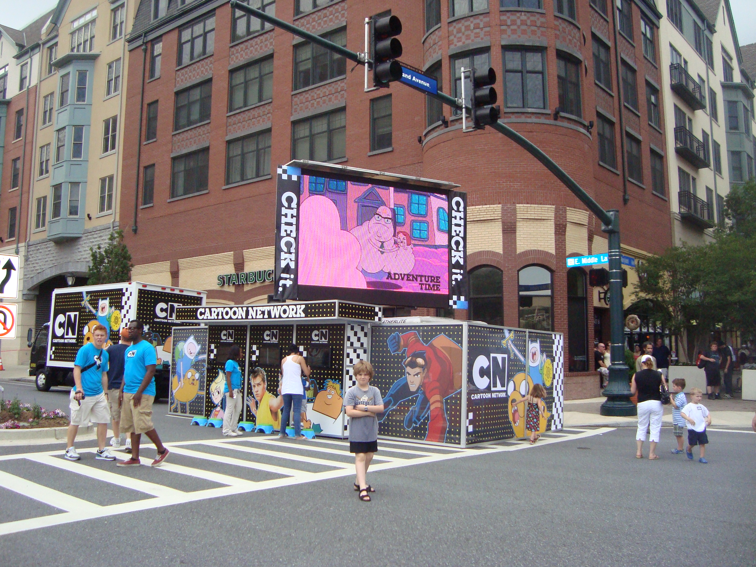 A giant screen from the Cartoon Network changed our local corner into a mini-Times Square. Also in the big City category, people had the chance to appear on local Channel 11 TV.