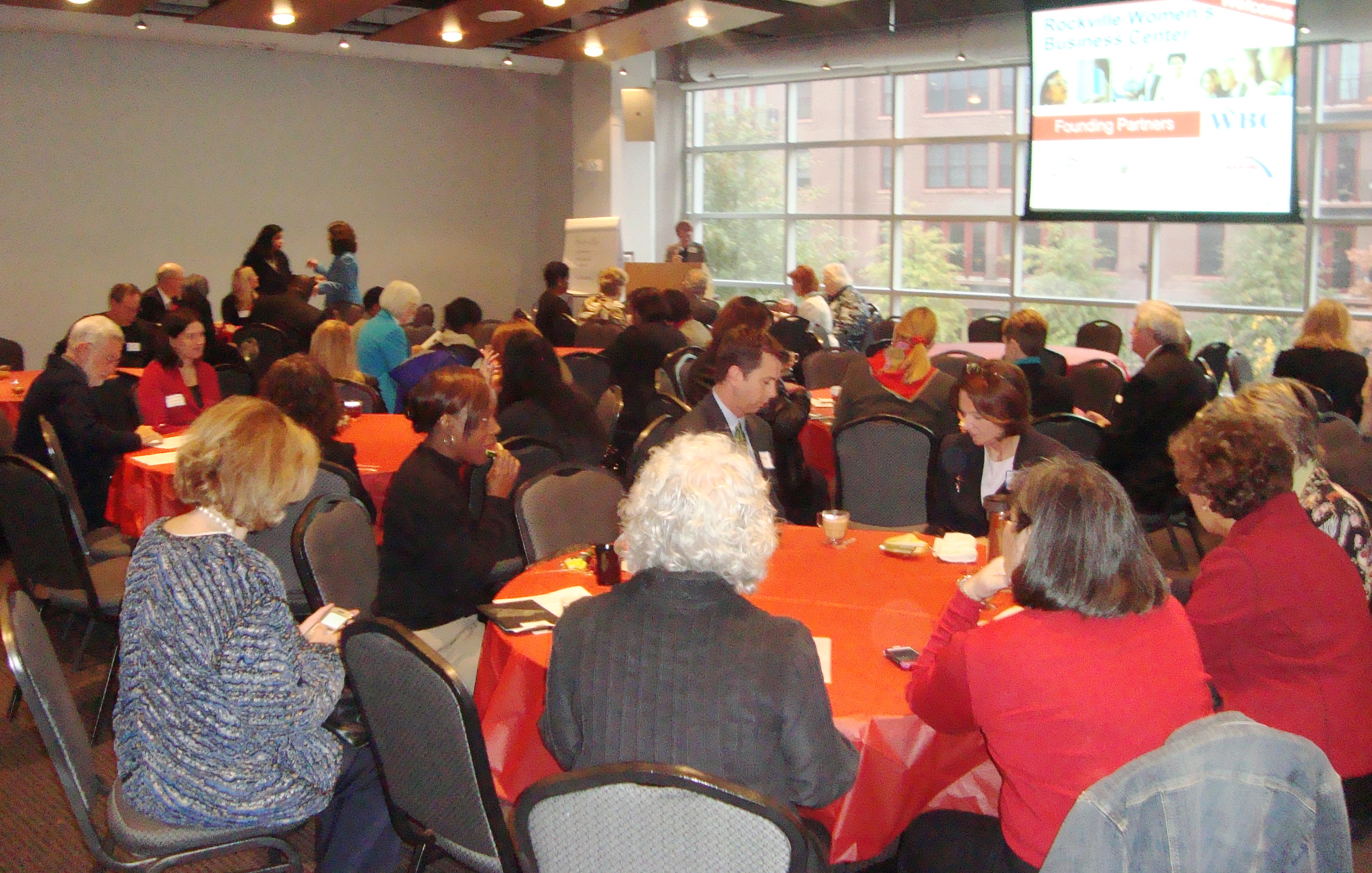 By reviewing the details of a 10-month feasibility study, Lori Gillen, the Managing Director of the RWBC, explained why we need such a Center and why it’s located in Rockville. During seven workshops over 300 entrepreneurs were surveyed about their needs. Although the workshops were not advertised as being for women, 64% of the attendees were women. The workshops attracted a diverse group; 60% were minorities while the Montgomery County minority population is 45%. Three-quarters of the attendees were “tire kickers” who were not in business. The largest percentage (26%) preferred a Rockville location which was also considered central to the others. The only drop in center for women in the County is provided by the Commission for Women. Although many volunteer women business organizations exist, respondents wanted more help with one-on-one counseling, business planning, and marketing. The greatest gaps identified for women business owners involved affordability, frequency, and accessibility of services. All this led to the creation of the RWBC.