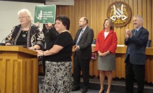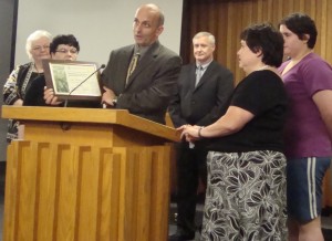 The Mayor and Council also renamed the City’s environmental award as the Carl Henn Outstanding Individual Environmental Achievement Award then made Carl the first recipient posthumously. Environment Commission members Kris Dighe and Beri Kravitz helped present the award to Carol and Allison Henn while explaining that Carl was “more dedicated than anybody to the environment.” The Award will continue to recognize “those whose efforts have improved the health or quality of Rockville’s environment or have increased public understanding or participation in environmental issues.”