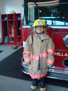 The Recruiting Station includes the front cab section of a real fire truck and soon the lights will be working. Two large screens show recruiting videos and fire scenes. Recruits can try on a full set of gear and attach a hose to a fire hydrant. The Station gives a recruit a feel for the job as well as the chance to speak with a volunteer about what it’s really like.
