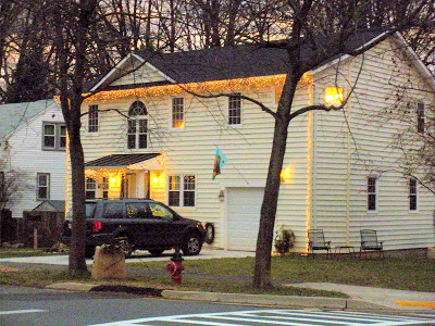 Driving home from dropping my daughter off at the bus yesterday, I noticed a neighbor was the first on the block to decorate up! In the dim morning light, the house looked pretty dramatic, methought.