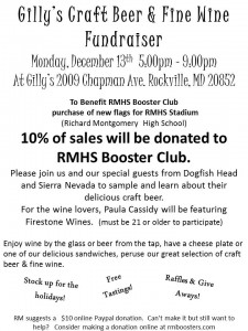 The Richard Montgomery Booster Club is holding a fundraiser at Gillys Craft Beer and Fine Wine on Monday Dec. 13th from 5-9 pm.