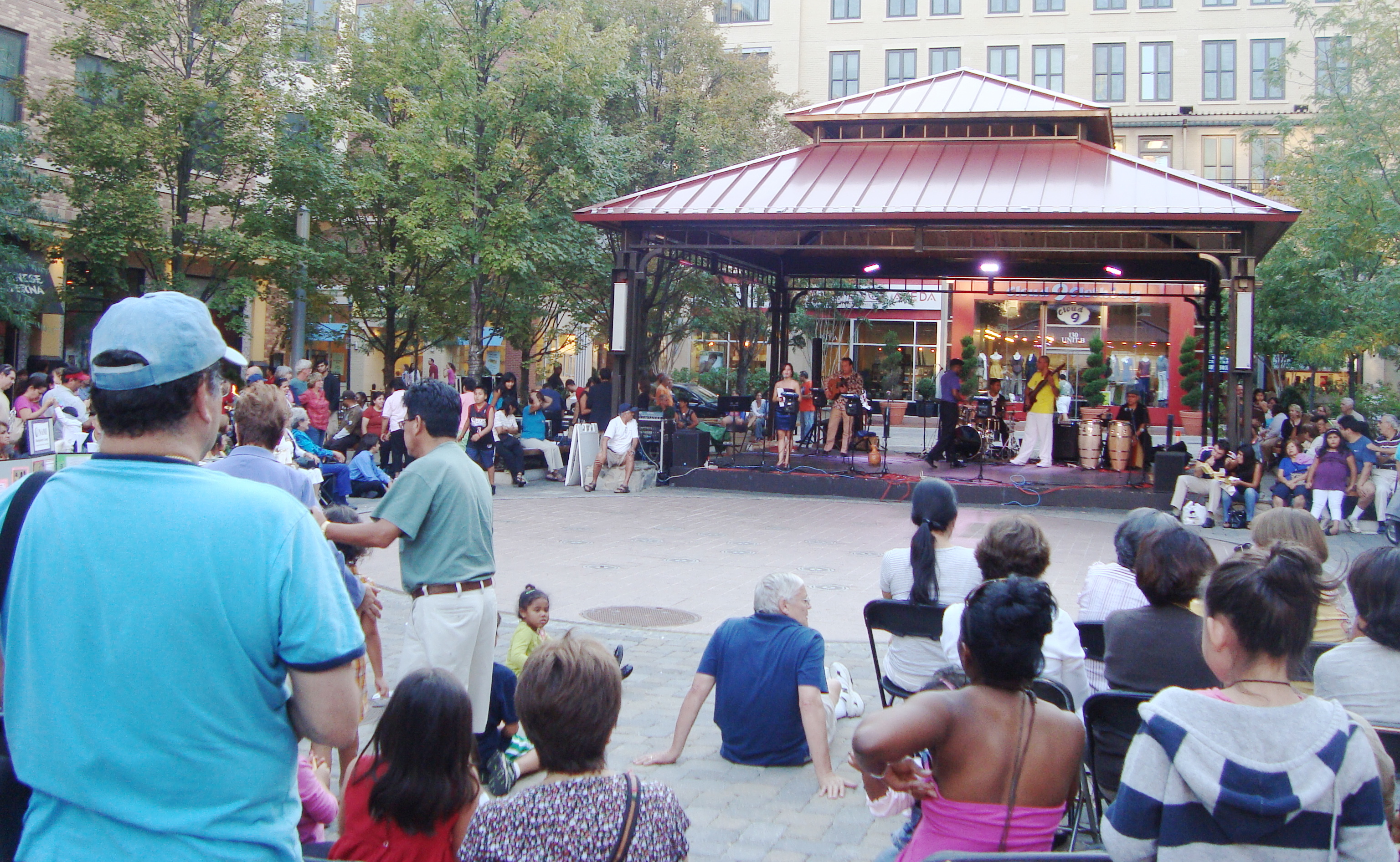 The musical entertainment and dancers all volunteered to perform at this new Hispanic Heritage event in Town Square. The final musical presentation was by Visions of Jazz. They were enjoying themselves so much they played until 7:15 PM even though the official ending time was 7 PM, which was a real testament to the good time being had by all. Here’s a very brief clip of their performance.