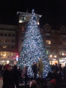Last night Rockville Town Square filled with people and holiday cheer as the tree was illuminated during a festive ceremony. I overheard one person say he “didn’t know there were this many kids in Rockville.” With Santa and Mrs. Claus, Rudolph the Red Nose Reindeer, and Frosty the Snowman visiting, families turned out in droves on the cold, clear evening.