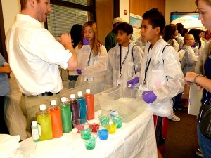 Science Day is a chance for seventh graders to get exposed to science outside of the classroom, in a real lab, in situations where it might actually be applied. Some students on today’s trip will be bitten by the science bug. In fact, I saw one student hanging back after his class left a demonstration, talking to the organic chemist about what it was like to do what he did.