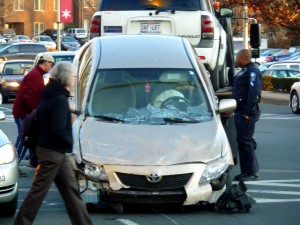 “I work up above,” said one onlooker. “I heard a crash and said to myself, ‘That’s no fender bender.’”