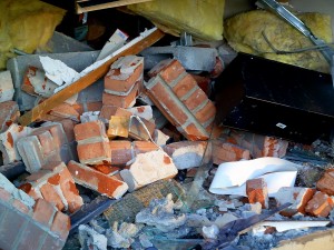 The vehicle caused a collapsed wall: