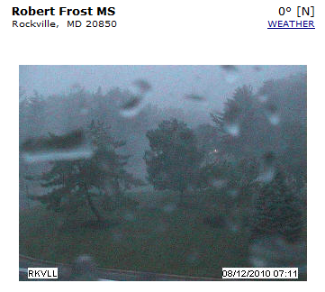 Special Bonus! The Robert Frost Middle School camera is often a good one, but it appears to have lost power this morning so it is stuck at 7:11 am. Also, it is in a part of Rockville that isn’t right near Richard Montgomery and College gardens, so it can give you a better sense of weather across Our Fair City. In case you are visiting this page in the future, here it is for you.